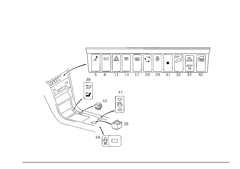 Electric window regulator,central console, rear.